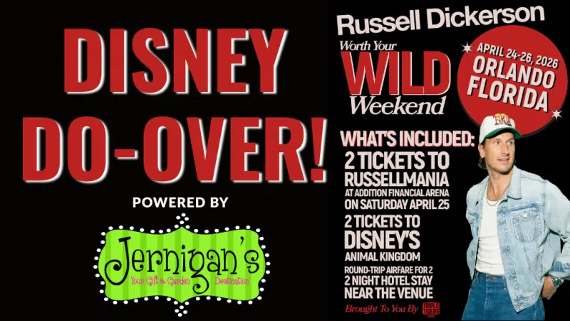 We're giving you a DISNEY DO-OVER, with a Weekend Worth Your Wild to experience Disney but this time with a concert included! QDR and Jernigan's are sending you to Orlando to ...