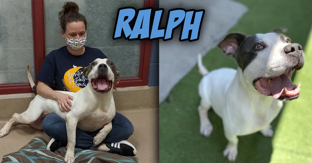 Ralph is about 7 years old and 66 lbs. He loves toys and tennis balls. He doesn’t always see the need to give the ball back but also doesn’t mind if you take it from him. He is on a joint supplement for some orthopedic issues and seems comfortable on that, but adopters will want to keep an eye of him and talk to their vet if/when that changes. He seems interested in other dogs but hasn’t been able to meet one while he’s been with us. Ralph is being treated for heartworm disease and should finish treatment soon. His favorite things are sunbathing outside and sitting in laps.