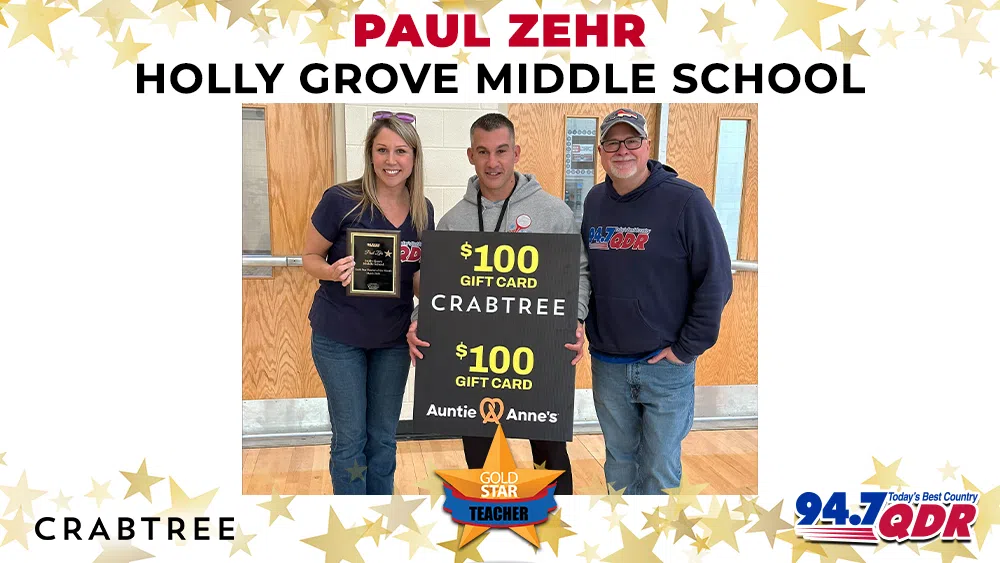 Our QDR Gold Star Teacher of the month for March is Paul Zehr, Health and PE teacher at Holly Grove Middle School.