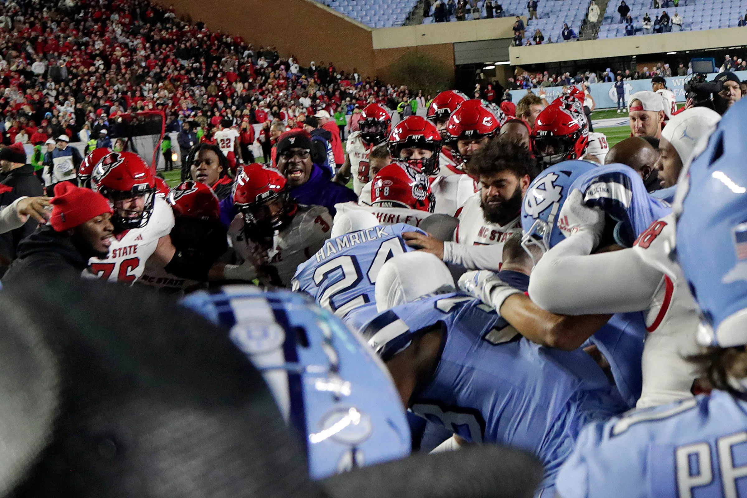 At North Carolina, the teams had to be separated near midfield. The brawl overshadowed coach Mack Brown’s final game.