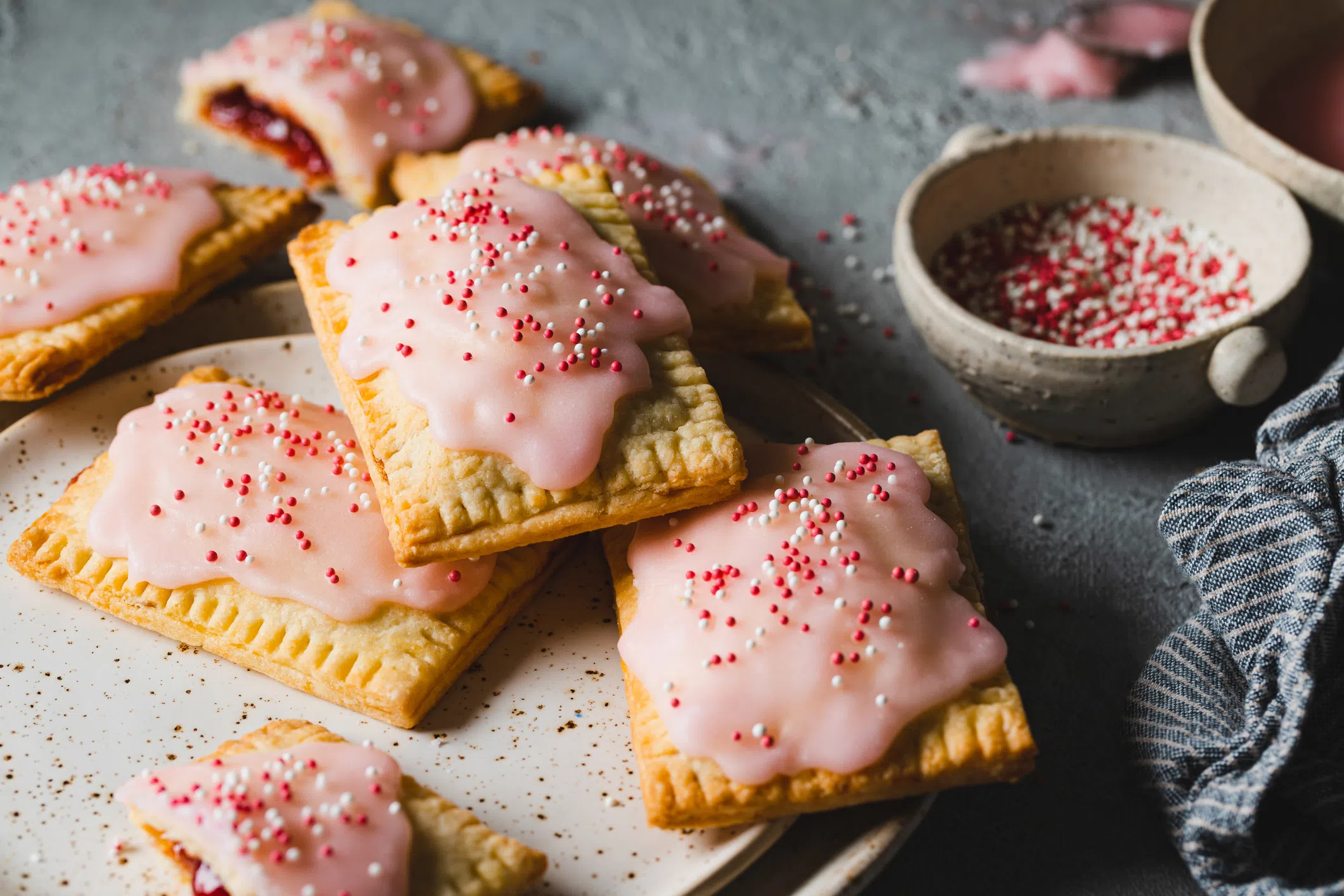 - While the tarts cool, prepare the glaze by whisking together powdered sugar, 1 tablespoon of jam, and 1–2 tablespoons of cream until smooth. Drizzle the glaze over the tarts and decorate with sprinkles if desired. Let the glaze set before serving.