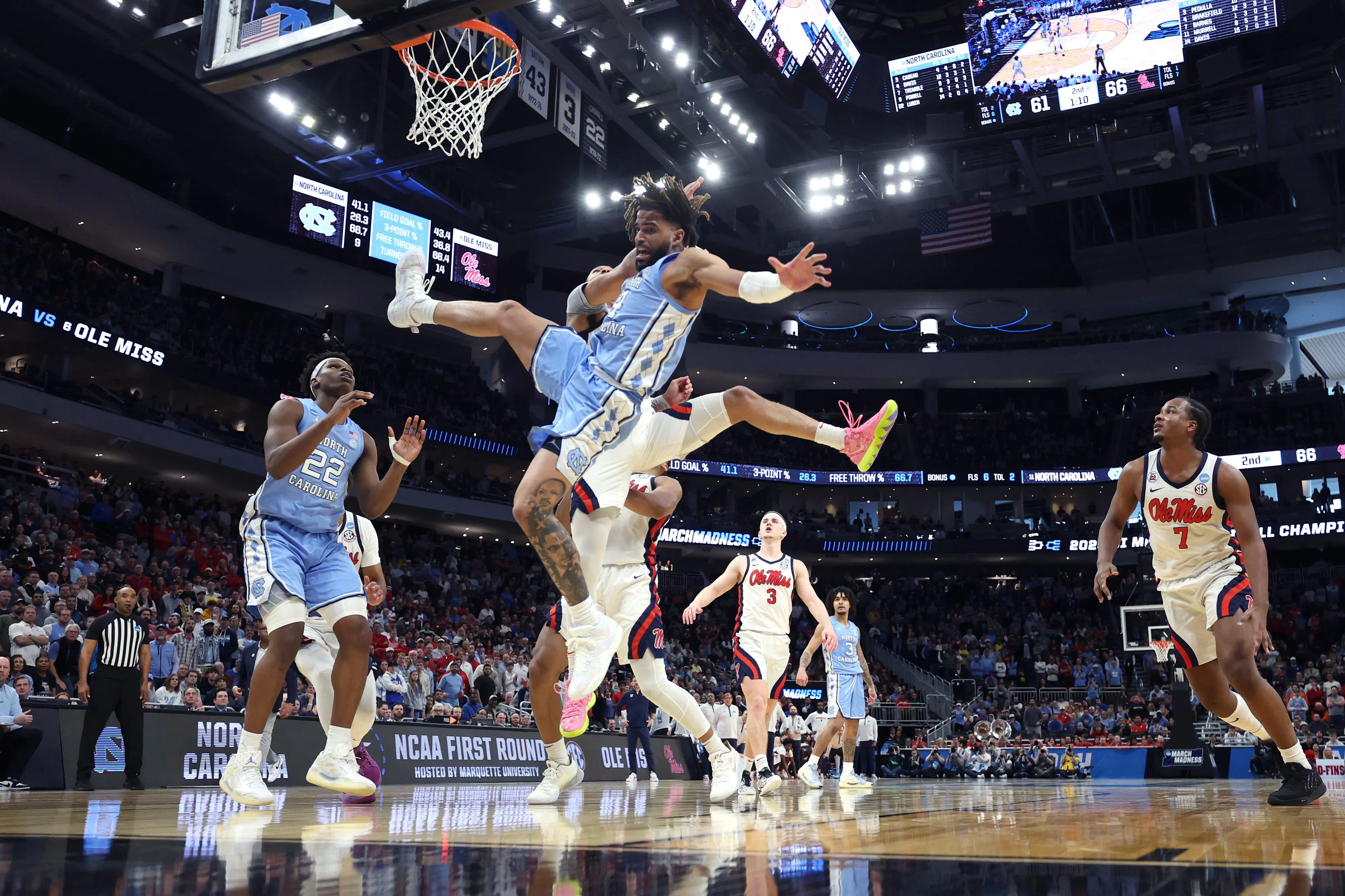 MILWAUKEE (AP) — Sean Pedulla made a critical 3-pointer with 52.8 seconds left, and Mississippi topped North Carolina 71-64 in the NCAA Tournament on Friday after the Rebels squandered most of a 22-point lead in the second half.
