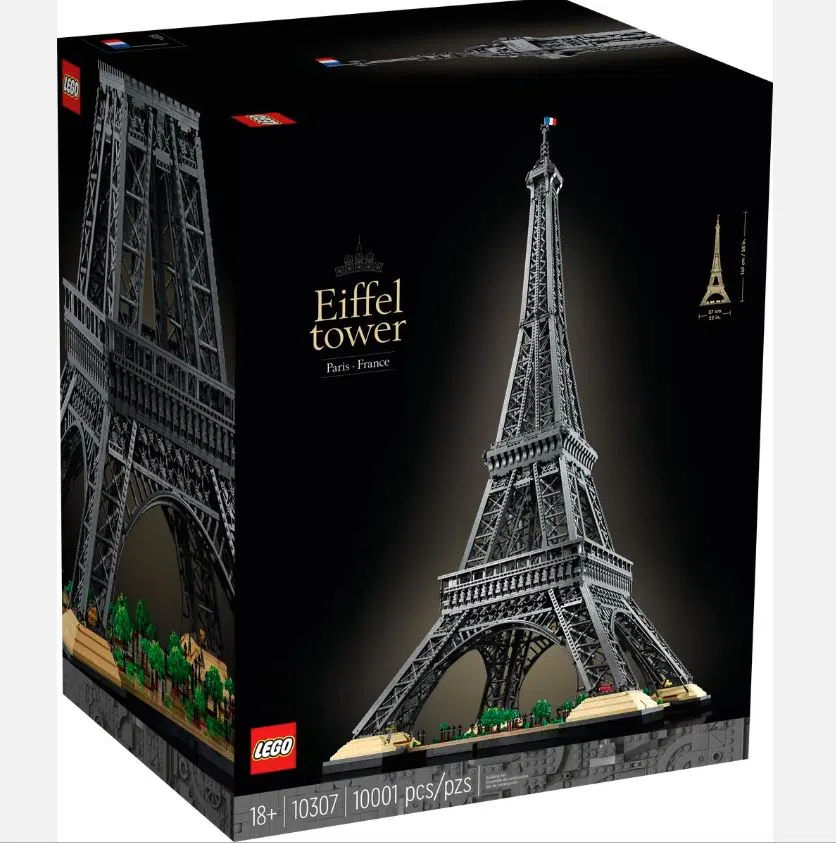 The 10307 LEGO Landmarks Eiffel Tower is the Lego company largest build yet! It has a whopping count of 10,001 pieces and stands at almost 5 feet tall, that is 58.5 inches or 149 cm.