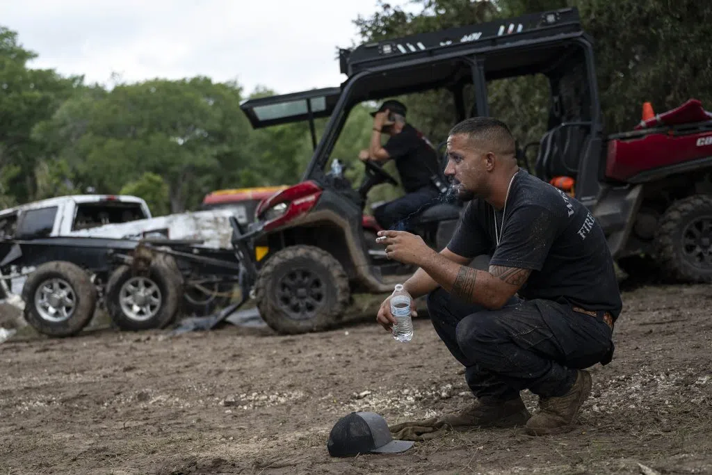 Search-and-rescue teams are using heavy equipment to untangle and peel away layers of trees, unearth large rocks in riverbanks and move massive piles of debris that stretch for miles in the search for the missing people. Crews in airboats, helicopters and on horseback along with hundreds of volunteers are part of one of the largest search operations in Texas history.