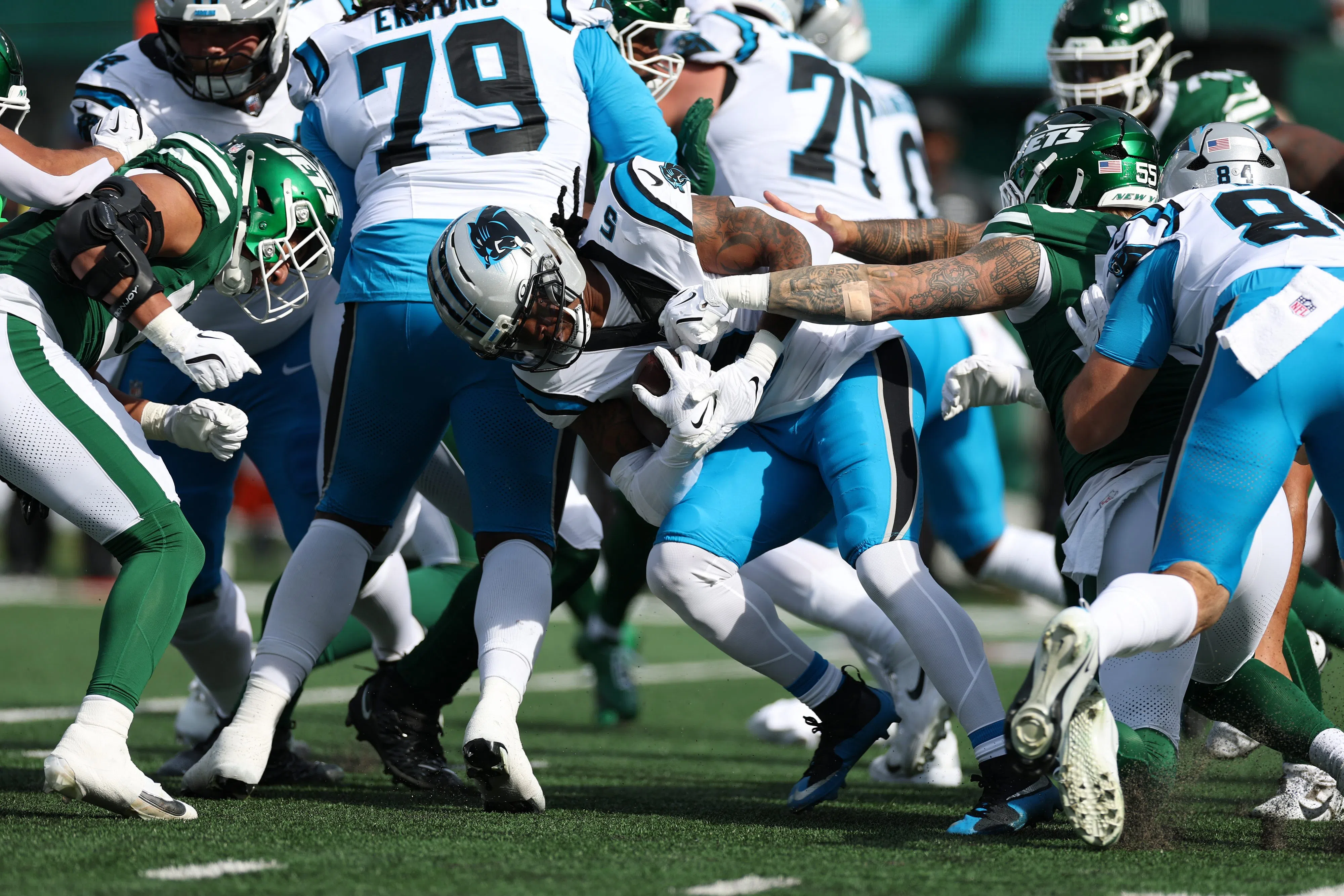Xavier Legette had the best game of his career, catching nine passes for 92 yards and a score. And the Panthers’ defense limited the Jets to 220 yards of total offense and had six sacks.