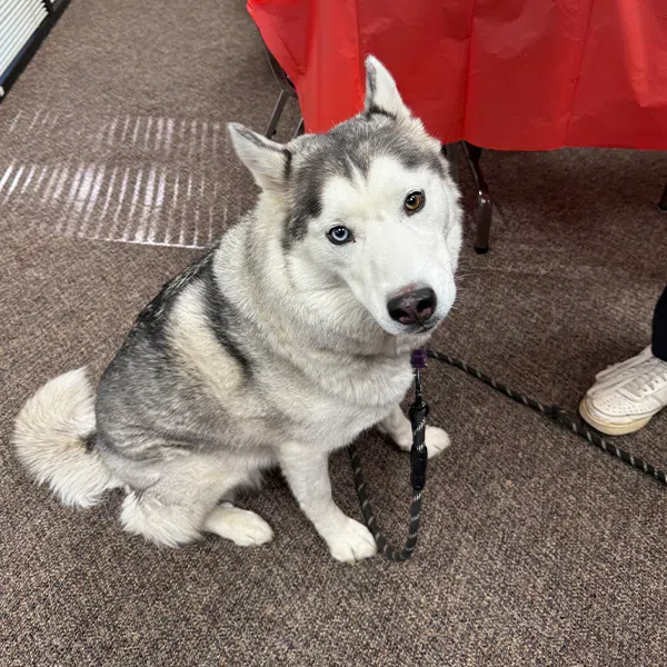 Meet Goosey, a stunning Siberian Husky who’s as sweet as she is beautiful! At a petite 40 pounds, she’s full of energy, love, and personality. Goosey is a total people-pleaser who gets along with other dogs and is generally submissive in her doggie relationships. She absolutely thrives on attention and is always ready to make new friends—two-legged or four-legged when out and about in the world. Goosey is an affectionate and mostly well-behaved girl, but she does like things her way and can be possessive of her toys, food, and personal space. She’s been making great progress with a trainer and is learning to share her world a bit more each day. To help her continue building on that success, her adopter should have experience with resource guarding and be ready to continue working with her trainer. With the right structure and support, Goosey can truly thrive. Given her needs, she’ll do best as the only pet in the home. As for crate time, she’s definitely not a fan—she’s a certified escape artist when it comes to her crate, often pulling off Houdini-level escapes! Because of her escape artistry, a 6-foot fence or an active home ready for regular leash walks is a must for her. If you’re looking for a loyal, affectionate, and playful companion who will keep you on your toes, Goosey is the one! She’s ready to bring her energy and love into your home, and she’s sure to be your best friend for life.