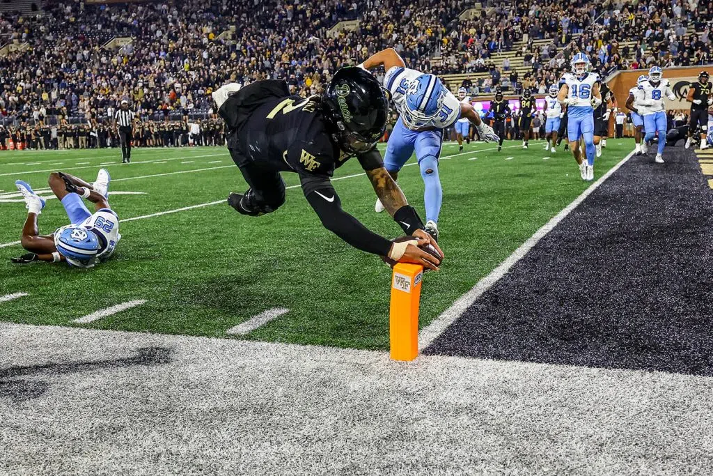 WINSTON-SALEM, N.C. (AP) — Wake Forest’s Carlos Hernandez scored two touchdowns, including one by returning a teammate’s fumble, on plays that caught North Carolina off guard and the Demon Deacons didn’t allow a touchdown in a 28-12 victory Saturday.