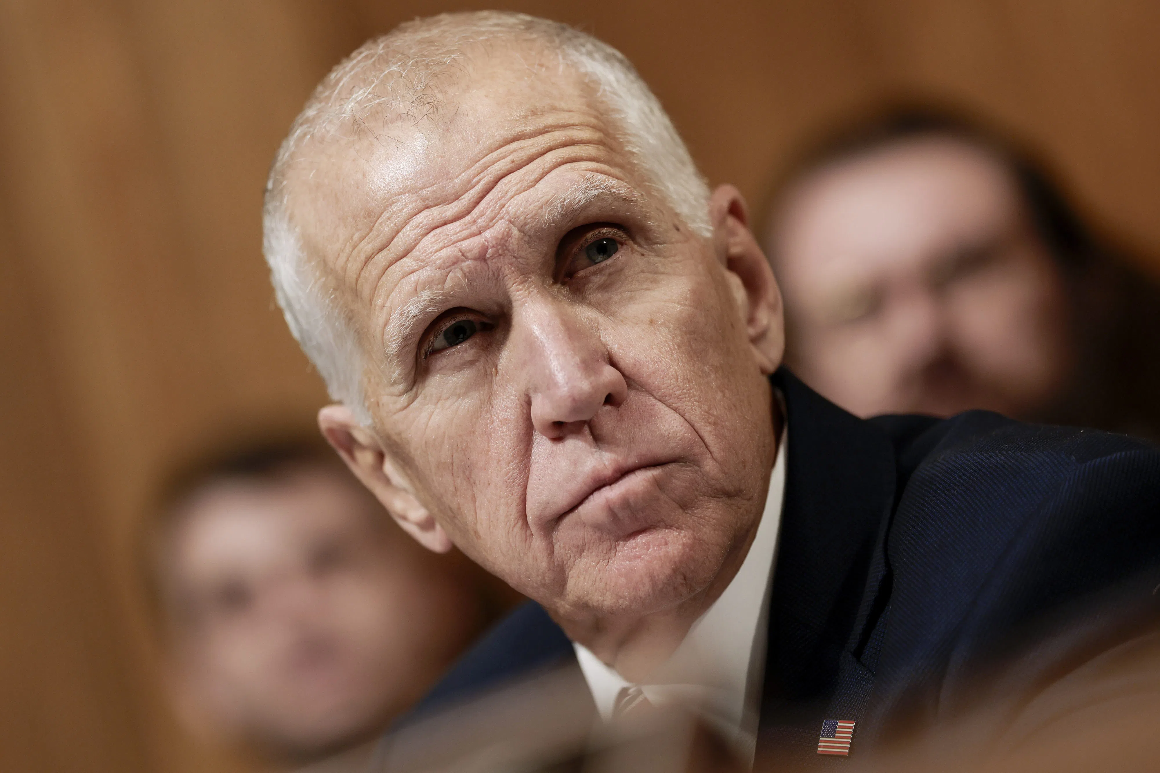 Senator Thom Tillis (R-NC) speaks at the Intellectual Property Subcommittee hearing on "Balancing the Interests of Local Radio, Songwriters, and Performers in the Digital Age" on December 09, 2025 on Capitol Hill in Washington, DC. Henry Hinton, Michael Huppe and Gene Simmons testified at the hearing. (Photo by Heather Diehl/Getty Images)