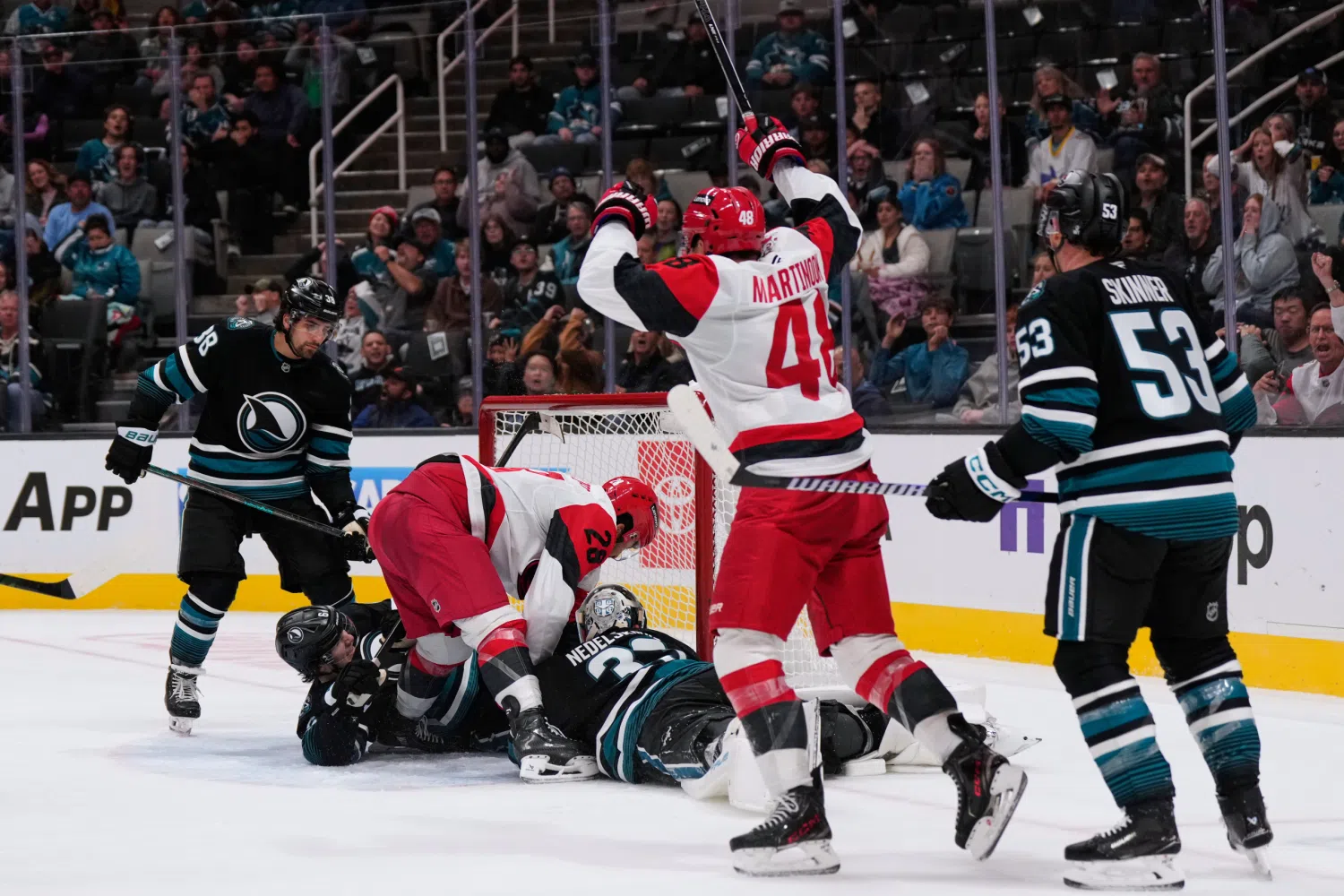 Carrier, Robinson score late in 2nd period and Hurricanes beat Sharks 5-1 to improve to 3-0