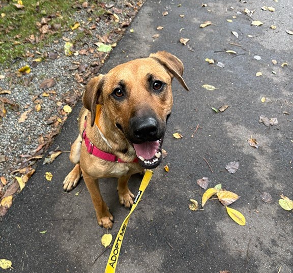 If you have a treat for me, or a tennis ball to chase, we’ll be best friends in no time! I’m a friendly boy who is sometimes a little shy at first, but I warm up really quickly — I just can’t resist getting affection from people! Really, I just want to be around you, hopefully doing active stuff a lot — can we go for a long walk or hike please?? I like other dogs and offer friendly play with them, although it’s good to introduce me slowly since I sometimes forget that I’m a big dude. I might be a little nervous around kids at first (“why are these hoomans so small?”), so kids 8+ are best for me. I’ll be a super loyal and loving companion! Come meet me today!